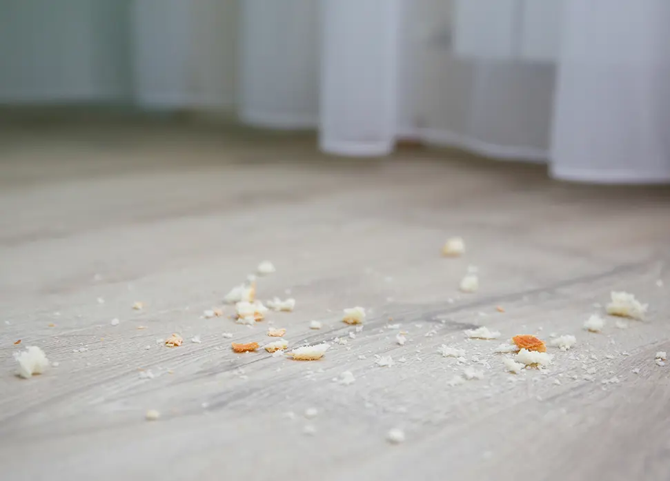 - Dark droppings that look like black pepper or coffee grounds in drawers, cabinets, or along baseboards